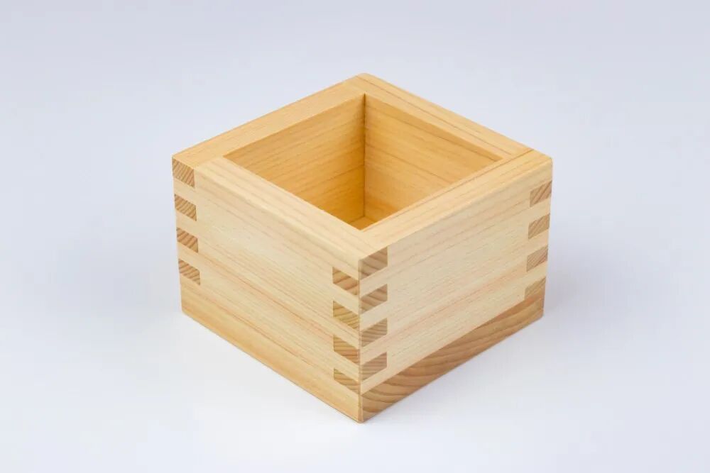 在制作枡时,首先必须把木材做干燥处理,然后将侧面和底部切出样子,在两端做出互相可以咬住的凸起部,就能把各部分严丝合缝地组合在一起。最后,在组装好的枡上,烧制上印章或者用绘笔画出装饰的图案,一个漂亮的扁柏酒盅就制作完成了。