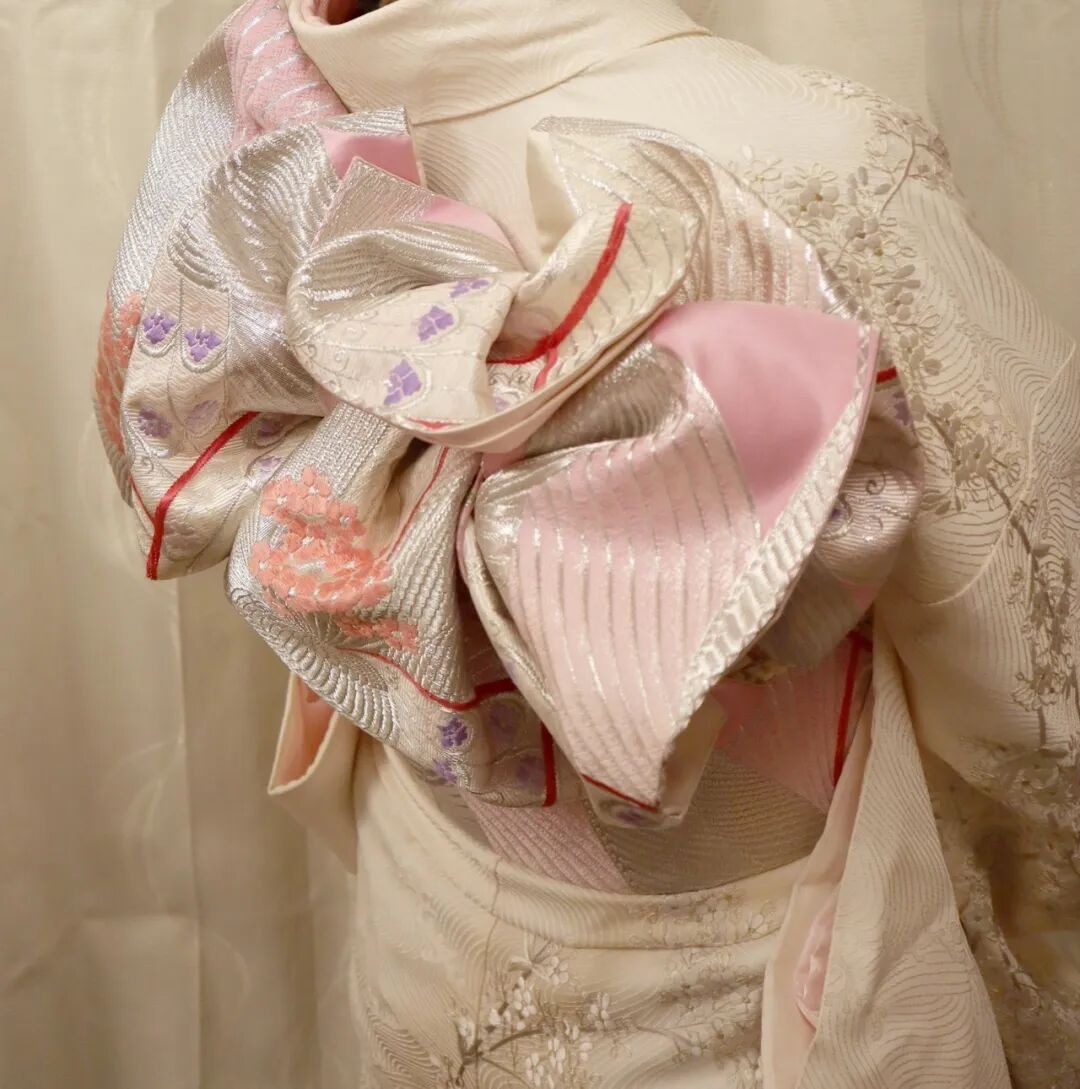 如果和服比较素,可以选择更为鲜艳的腰带进行提亮,和服本身比较鲜艳,就可以用素净的腰带来压一压,过渡一下。