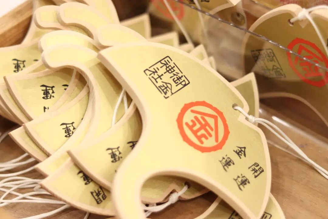 当然,这里的金指的不仅仅是金子、钱,而是指金属,特别是生活中会用到的金属。因为神社里面有一棵巨大的银杏树,所以这个神社的绘马就被做成了银杏叶的样子。