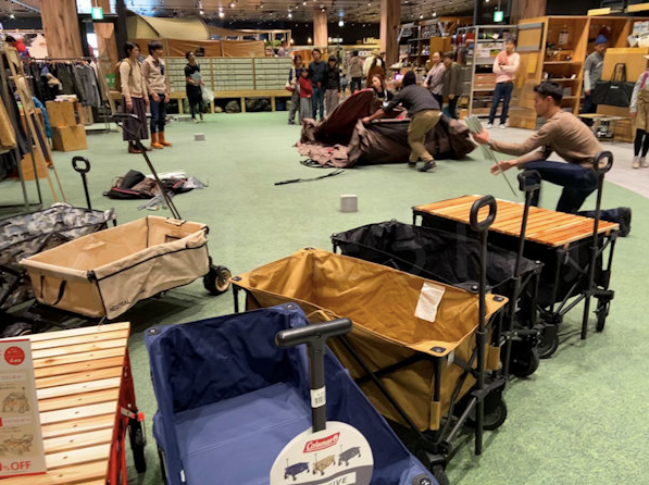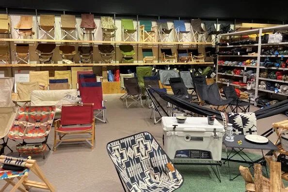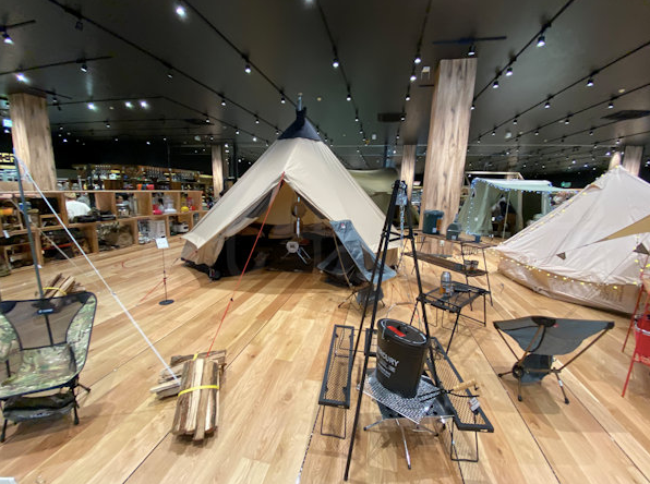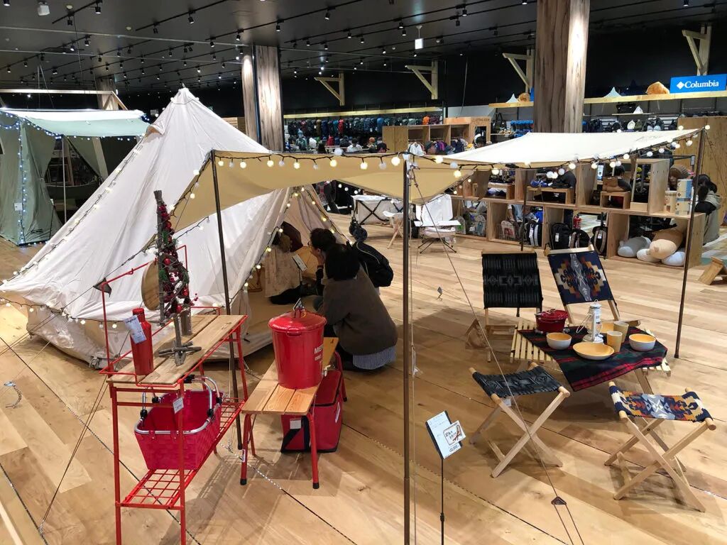 在这家新开张的店铺内,不仅陈列出多达250个品牌的5万件产品,并且在店内营造出“野营”的氛围,人们可以自由体验、感受各种露营用具,帐篷、野炊用具、露营椅、冲锋衣…