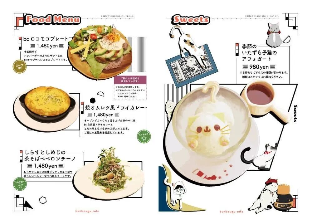 咖啡和甜品自然也是主角,小猫咪造型的阿芙佳朵是网红饮品,乖巧的样子让人舍不得喝下。