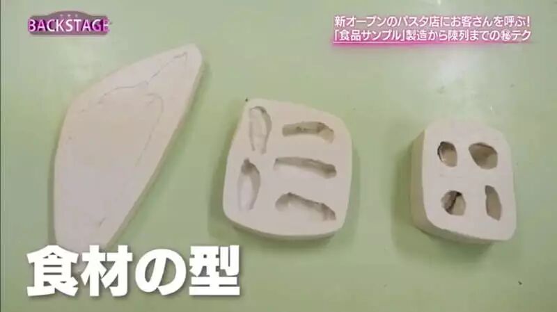 这个时候真品料理就会被拿到工厂,模型师直接拿真正的食材制作模具。