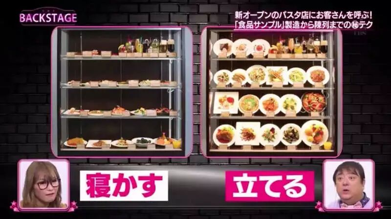 所以,食物模型全部要稍微往左倾斜,并且主打商品要摆在显眼的左上方。