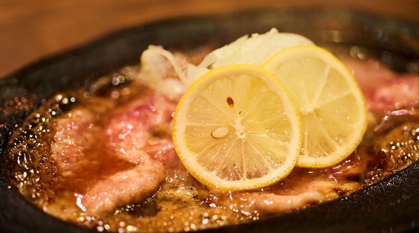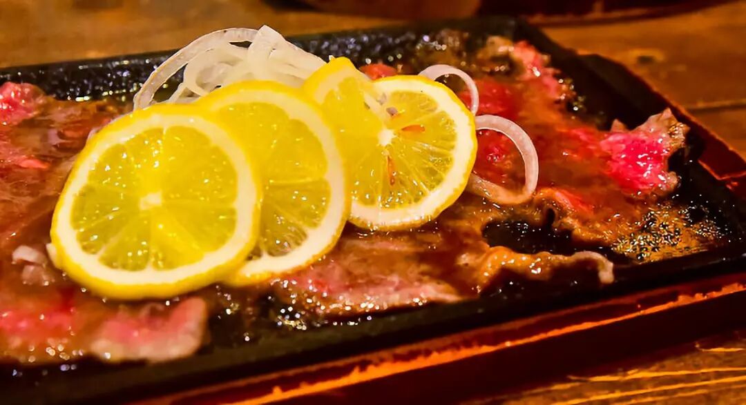 柠檬牛排也是佐世保的著名小吃,虽是西方口味但融合了日本当地的口味改良。烧热的铁板上放上薄片牛排肉,烤之前淋上柠檬分为的酱油调味。