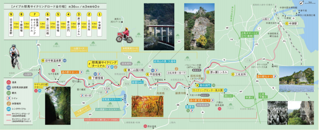 贯穿其中的枫叶耶马自行车道,