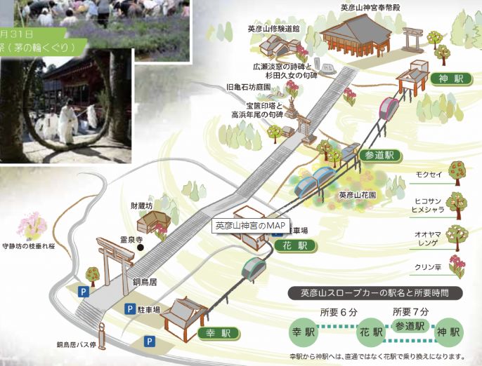 英彦山在福冈和大分的县境处,用中文话就是跨两省旅行了。开始观览英彦山需要从一个叫“幸站”的地方开始。这里有三个免费的停车场,在这里停车,然后目标就是山半腰的“英彦山神宮奉幣殿”