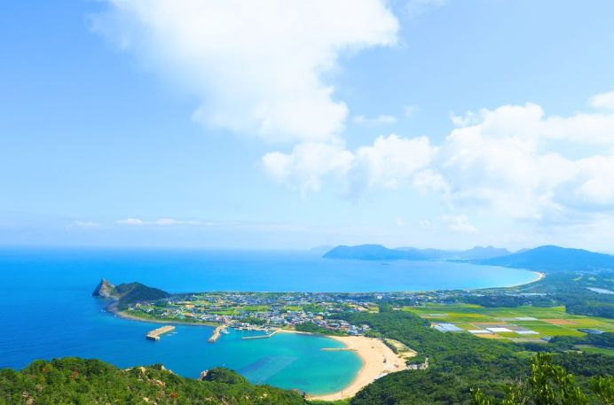 在系岛市志摩芥屋的海拔209.5m的立石山,是喵喵首推的第一个好地方,如果你有无人机,在这里航拍视野开阔,而且天空一直很清澈。自驾游的话开车到半山腰,然后仅花15分钟就可以登山了。登山后可以看到芥屋海水浴场漂亮的海水,系岛独有的海岸线。