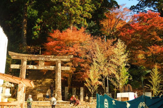 如果是徒步的话,第一站就可以看到幸站的旁边的“铜鸟居”这里是日本指定的重要文化遗产,青铜制的大鸟居,高7m。上面写着英彦山的名字。
