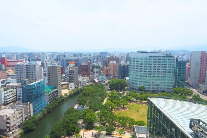 乐意看到远处的福冈塔,希尔顿酒店和都市高速。福冈作为一个大都市有的人气风景一收眼底。