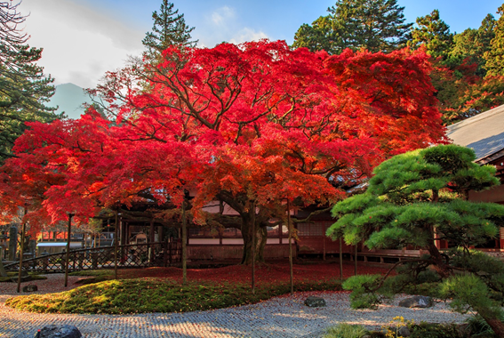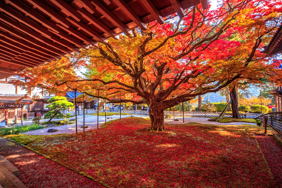 11月中旬左右,树龄大概400年左右的古枫(縣指定自然紀念物)的红叶非常绝美。