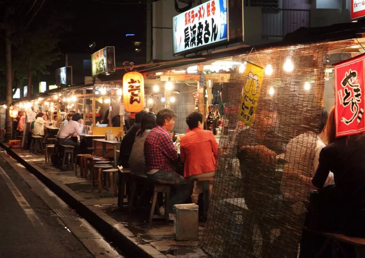 他说,我们这里的屋台(yadai,读音为“亚呆”)必须要吃一吃,感觉很不一样呢!听他描述,像是流动的小摊,又有些大排档的感觉。脑海里立刻浮现韩剧里那些吃着炒年糕、喝着白酒、男女主角半醉半醒的场景。可,这是在高大上的日本哪!