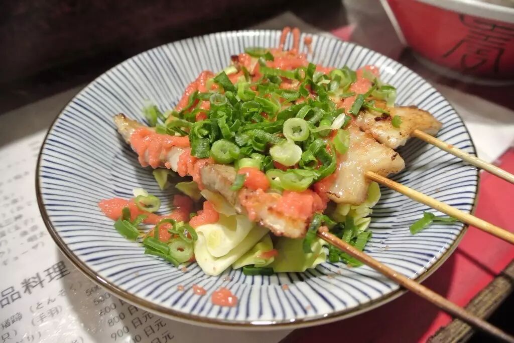 挑了一间颇为人气的摊儿,跟朋友掀开暖帘进去,里头已然坐了五六个年轻人,恰好还有两个空座。摊主是个年轻小伙子,头扎白毛巾,笑眯眯地跟我们打招呼,竟然还能跟我们说“你好”。刚一坐下,有点儿不知所措,但边上的姑娘小伙倒是先开了腔,问姐姐们从中国哪里来呀,到九州来干嘛啦。幸而我还能磕磕巴巴说些日语,答了几句,他们就更兴奋了,一边建议我们点哪些菜,一边说,来来来,姐姐们喝一杯。几串五花肉和猪软骨,几个煎饺,一碗拉面,就可以边吃边聊了。有趣的是,这里真的有韩国料理,比如辣酱炒牛肠,活脱脱就是思密达味。原来福冈离韩国釜山很近,两地常有往来,不但带入了韩国食物,连屋台老板都能说上几句韩文。