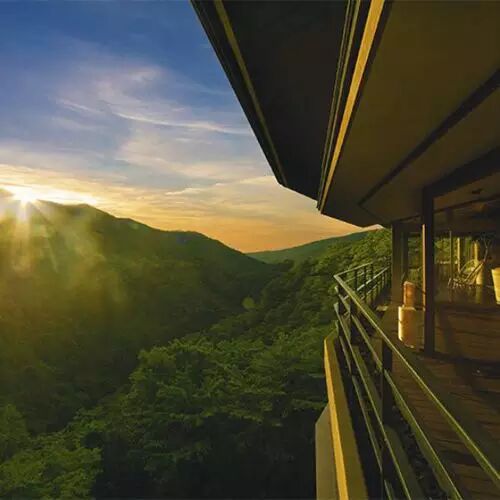 所有的房间都可以远眺溪谷,配备有露天温泉、露台、餐室的日式风格延时型居住度假胜地。这个旅馆常常客满,因此,作为很难预约到的旅馆而闻名。从东京驱车只需一个半小时即可抵达。
