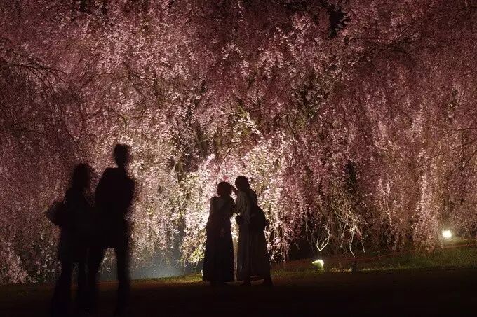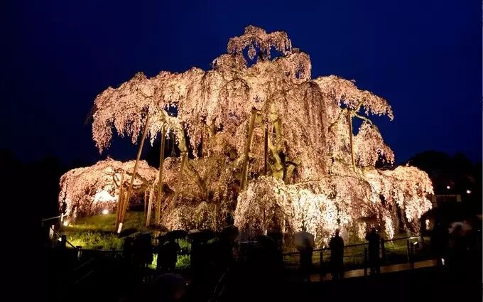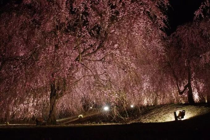 静かな山里に咲き乱れるしだれ桜。期間中は7万人の花見客で賑わいます。
