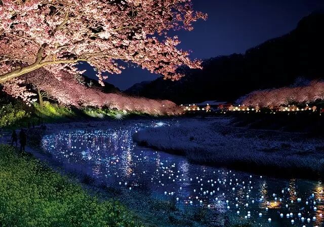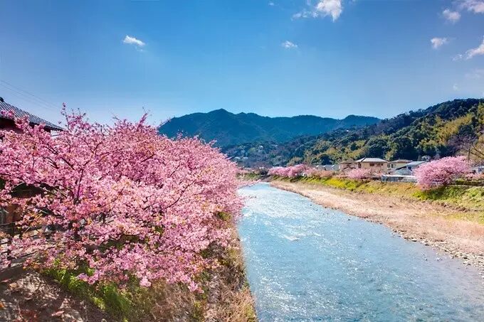 ひとあし早い春を告げる早咲きの河津桜。河津川沿いに約4km続く桜並木は、開花後約1ヶ月をかけて満開を迎え圧巻の絶景となります。出店やイベント、夜のライトアップなど楽しみもいろいろです。