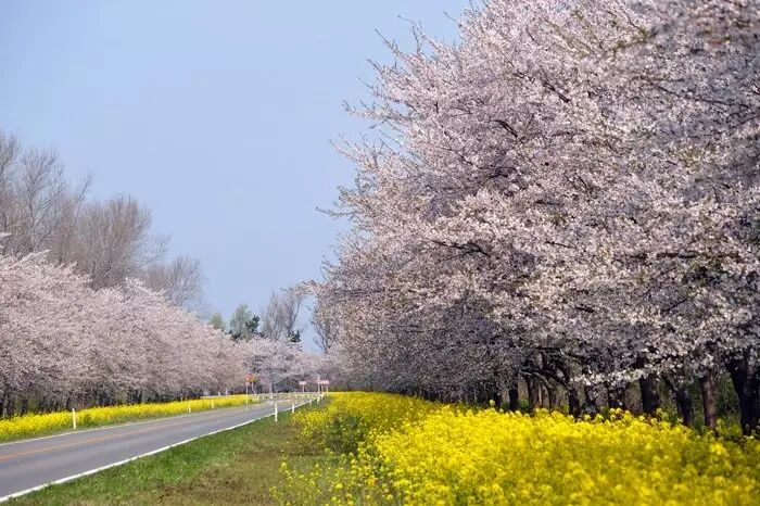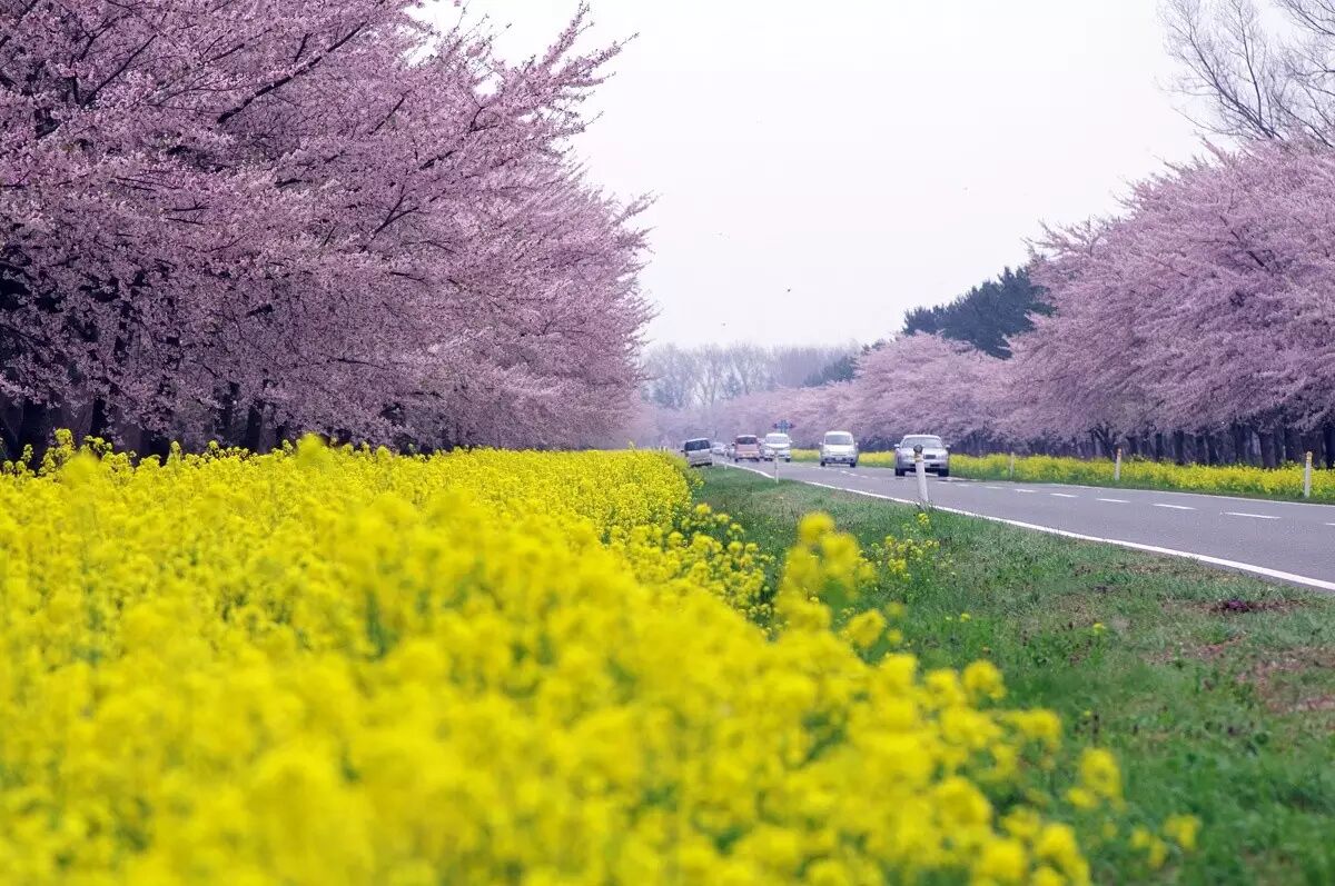 県道298号線に沿って、どこまで続くかと思われるほど見応えのある桜並木が「桜と菜の花ロード」である。道の両側11㎞にわたって展開するスケールの大きい花見スポットで、春には桜と菜の花はもちろん、緑色の黒松とのコントラストも楽しめる。