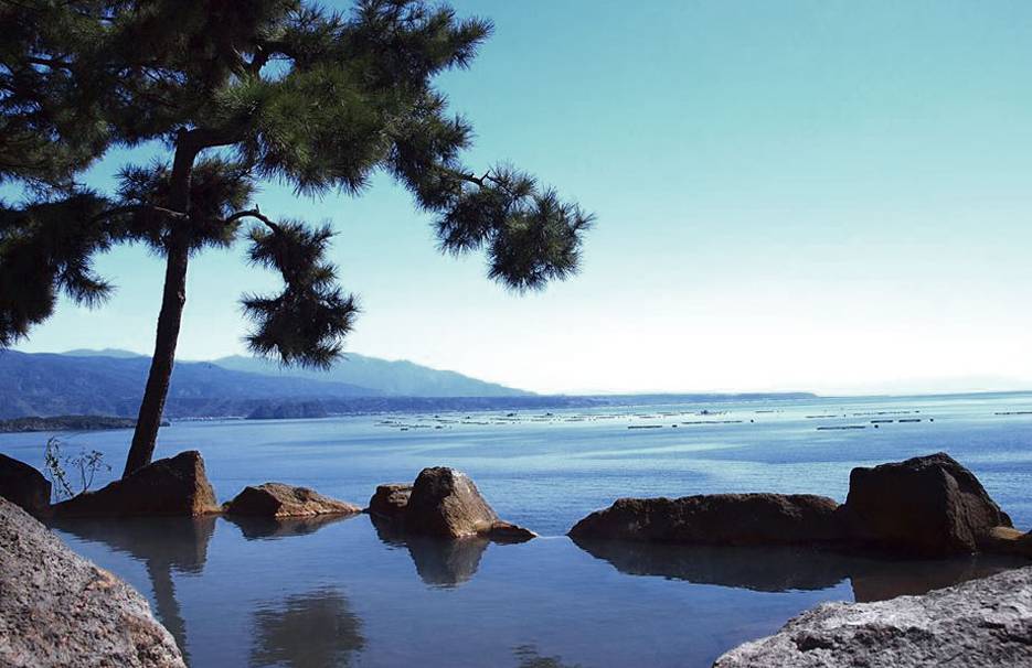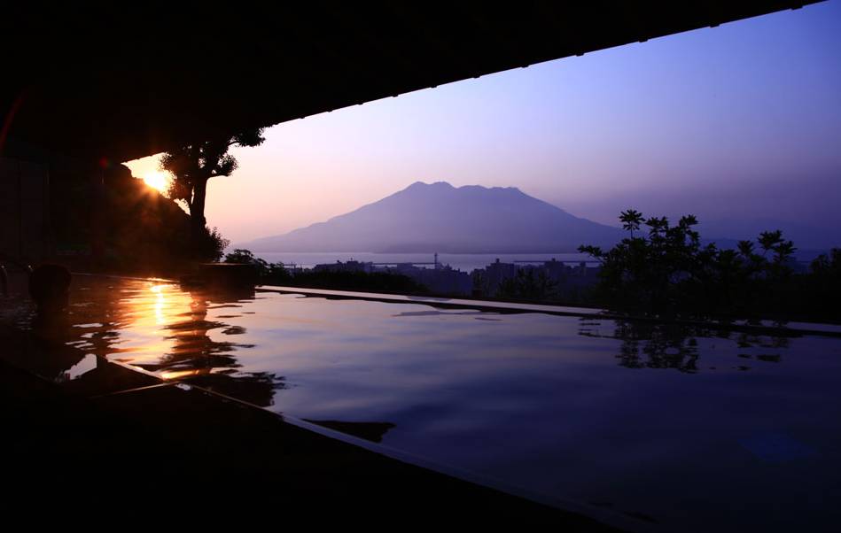 樱岛上的温泉旅馆,源泉温度46度,有丰富的矿物质。泉水一天更换两次。所以一直保持新鲜而且在这里还可以看到远处的大海。