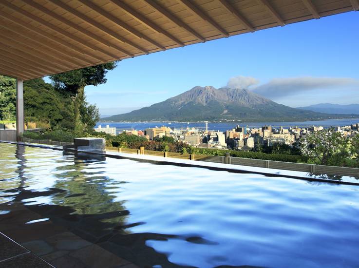 这个温泉位于錦江湾周边可以看到远处的桜島,可谓是展望台上的温泉。