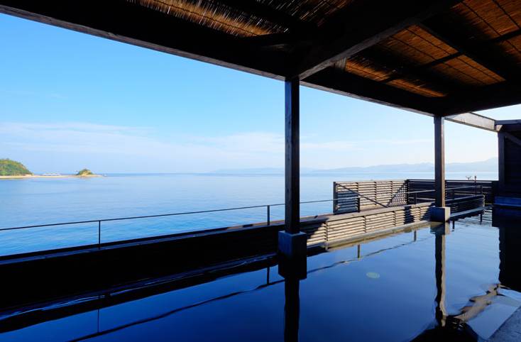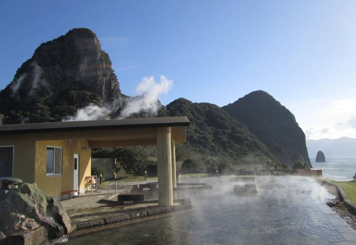 这个温泉在指宿市南部、开放是的温泉面对东海,眼前就是標高924m的薩摩富士・開聞闪。此地经常被各大媒体报道。一边泡温泉一遍可以看水平线上的屋久島。这个和風露天風呂奇偶数日是女性用、偶数日是男性专用。