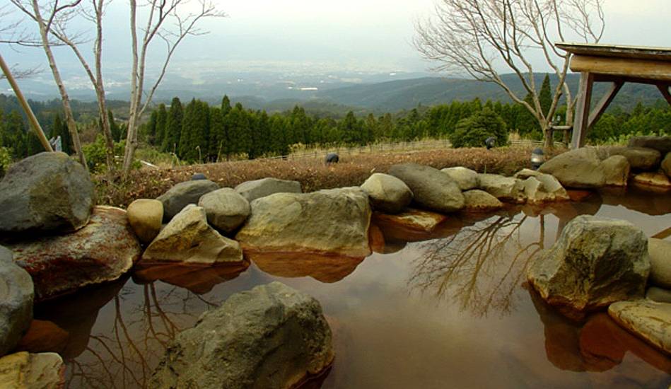 此温泉在标高700m山顶上、全馆都能看到雾岛。文政2(1819)年的时候猎人横尾権太发现了这里有自然温泉。有单纯泉和硫磺泉两种。