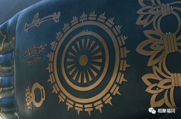 释迦涅槃佛像的脚心有着如照片所示的图纹。在日本,释迦牟尼佛的脚称为「佛足」。印度初期的佛教,佛足也是人们参拜的对象。图纹的样式代表着对释迦牟尼佛谆谆教诲的遵从,以及感受他慈悲为怀的胸襟。