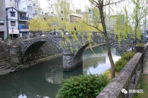 眼镜桥是架设在中岛川上日本首个石拱桥,因其形似眼镜而得名。在桥边的堤防内嵌入了20个左右的心型石头,这里也是祈愿爱情的人气景点。