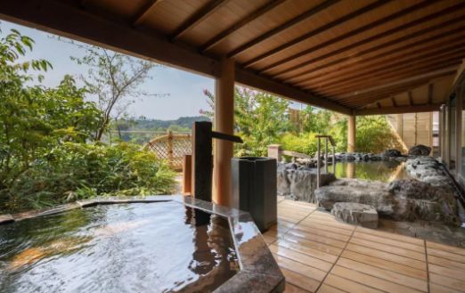 这是一家充满开放感的空间的酒店,由可以感受到树木的温暖的日式设备和度假村氛围协调而成。3楼和5楼有带露天浴池的大浴场,自家源泉的温泉是对皮肤温和的弱碱性,也被称为美肌之汤。地下一层有球磨烧酒仓库「左藏」,可以购买当地的球磨烧酒。