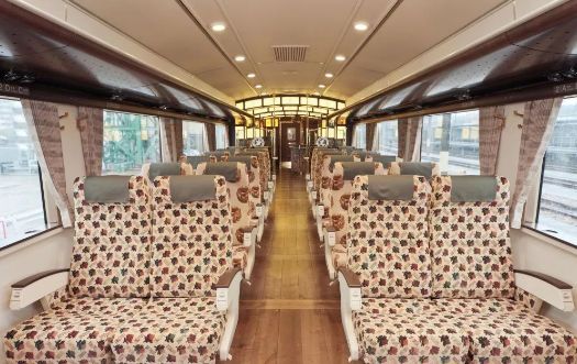 富有设计性的坐席及彩绘玻璃使车厢内充满时尚气息。