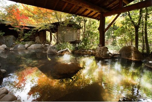 枫叶季在这里,吹着竹林间的风,一边泡汤一边数着红叶,美妙感受不可言喻。