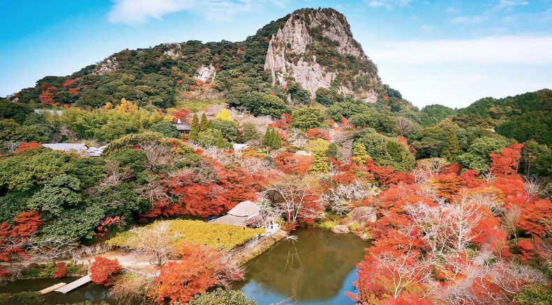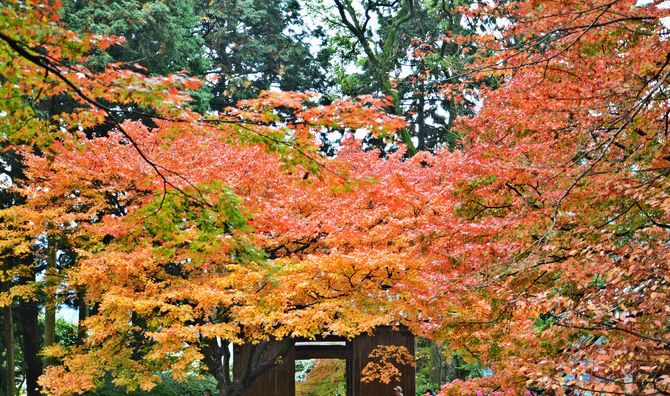 位于太宰府天满宫附近的光明禅寺是福冈县的赏枫名胜,这里也是九州唯一以枯水山庭园为造景的庭园。禅寺的入口看似普通,但一进去便会发现内里另有洞天。一到秋天,于园中石庭前驻足观赏,满是怡人红枫的白沙与还未飘落的枫叶交相呼应,构成一幅艳丽十足的画卷。