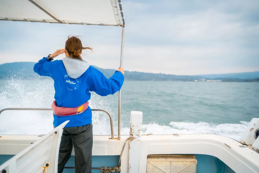乘坐口之津的观光船去看海豚,需要提前预定,游玩时间差不多1小时,每一个一个小时发一班船。穿上救生衣,怀揣着雀跃之情坐上了观光游艇。