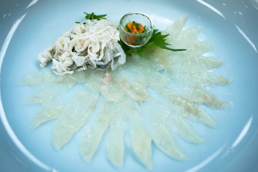 当然最令人念念不忘的自然是一泊二食的幸福时刻了,晚餐准备的是丰富的河豚料理。不得不说日本的厨师真的超级有想法,一只河豚可以从头到尾,从肉到皮,做出十几种的料理。