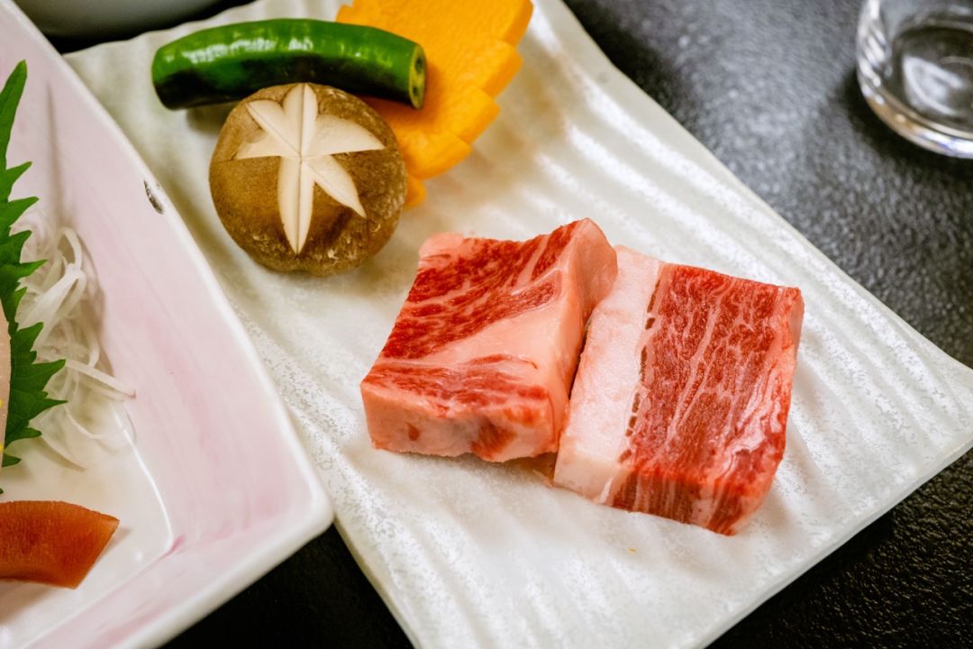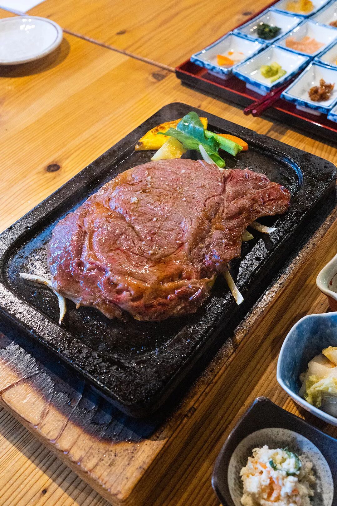 赤牛在阿苏大草原上自由放养,因此没有太多脂肪,肉质柔软细腻,烹饪后鲜嫩多汁,是做牛排的顶级食材,稍稍煎熟后就能达到极佳效果。香味四溢的赤牛,再配合爽口的小菜与味增汤,就是顶级的美食享受。