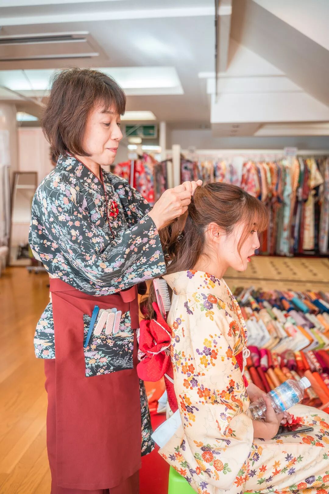 杵筑为了向游客宣传和服文化,只要身着和服,大多数景点都可以免费参观,颇有点向京都看齐的意味。和乐庵是杵筑城下町唯一的一家和服店,这里的和服花色非常丰富,还有搭配的头饰、配饰、道具和包包可以配套选择。