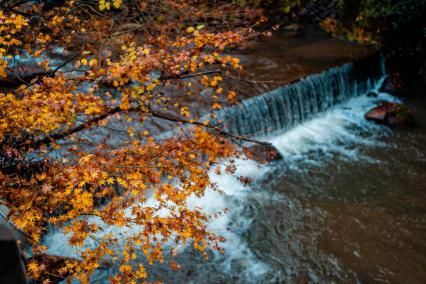 窗外的景色就如同一幅秋意浓浓的山水画,下有潺潺流过的溪流,木质廊桥搭建于其上,对岸是黄绿交错的植被山林,如果早一点来,11月中旬的时候,漫山遍野的枫叶一定美到窒息!