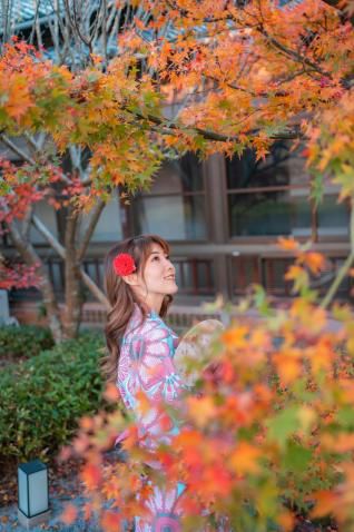 除了舒适的房间环境,旅馆内的小庭院也是极美的,泛黄的枫叶,浓浓的秋意,随手一拍都像是画中的女子。