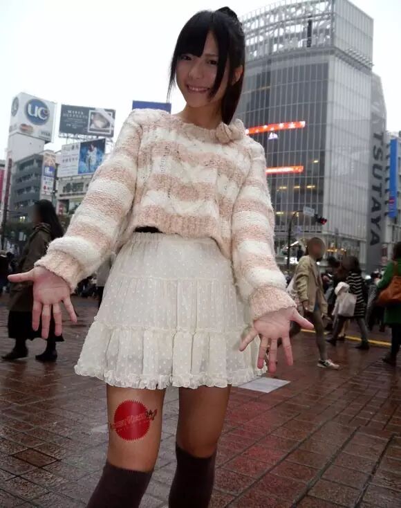 日本女孩在自己的大腿上打上广告,一天8个小时以上,并且照上照片,放到SNS上与大家分享,就能赚钱1万日元以上(600多人民币)