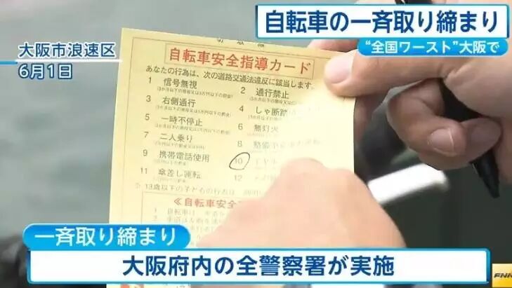 在日本骑自行车的注意了,大阪已经开始严打! 走进日本 2017年6月9日 16.81W 0 下载喵日本APP获得更多日本相关信息,自由行定制微信janson-ren 在日本骑自行车不小心你就犯法了,已经有人以身试法。 至于为什么发这个文章,请看上面这篇文章。 在日本骑自行车也会违法。近日大阪展开大面积执法。镜头下这位小伙子看到警察急忙把耳机收到口袋里。 你没有看错,在日本骑自行车带耳机也违法。 大阪骑自行车的危险行为占全国三分之一。已经有11个人去接受安全教育。 福冈骑自行车的人也不少,指不定哪一天福冈县长一高兴就搞一个自行车严打。所以在福冈骑自行车的小朋友们一定要注意本文开头文章说的相关事项。 看看骑自行车到底有哪些地方值得注意? 在日本骑自行车不小心你就犯法了,已经有人以身试法。 赞(0) 赏 分享 本文由 相聚福冈 作者:janson 发表,转载请注明来源!