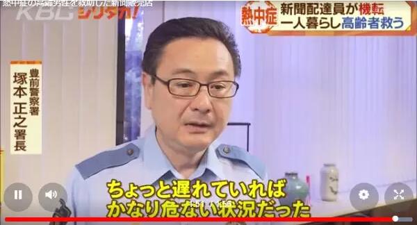 今天看新闻的时候也发现一个很有人情味的事情,福冈县一个独居的老人。因为最近太热了中暑倒下了,被新闻配送员给救了。