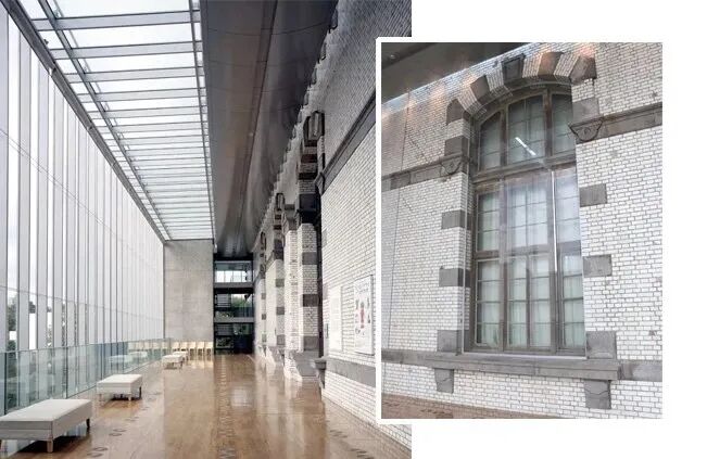 新增建筑部分使用了安藤爱用的混凝土材料,庄严简洁的外观与原建筑的风格异常和谐统一,既保留了古典美又带有几分现代感。馆内的设计尽可能保持了原有装饰风格,欧式风格的拱形天顶、灯饰仍旧华丽如初,加上安藤忠雄对于光线的巧妙运用,更是营造出沉静典雅的氛围,改建后的老建筑在新时代仍旧有着无尽魅力。