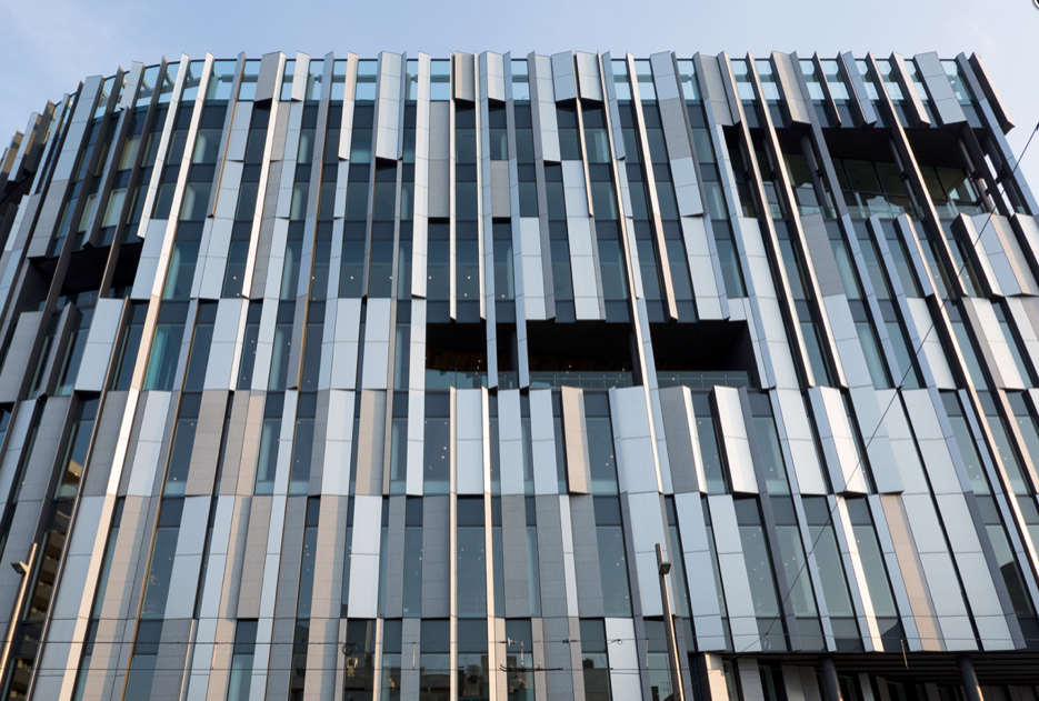 建筑的外立面采用了花岗岩、玻璃等不同材质组合而成,风格简约前卫,带有几分现代主义感;富山市的玻璃制造业历史悠久,隈研吾在设计中也巧妙地将这一点融入进去。