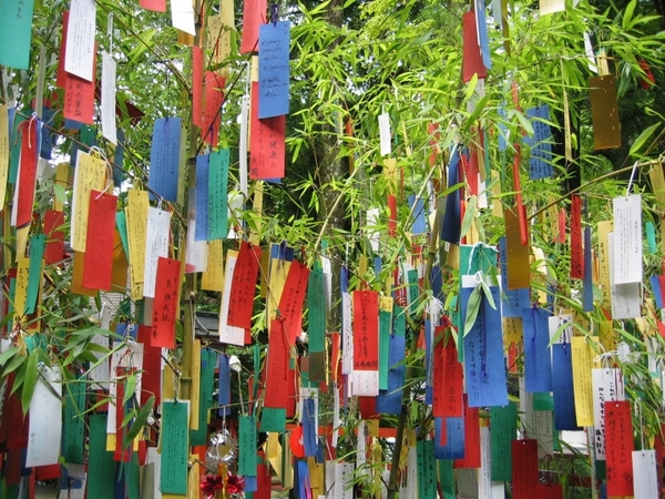 据说七夕是奈良时代从中国传入日本的。在七夕这一天,日本的大街小巷都会被七夕的特有装饰品——短册装扮得五彩纷呈,日本人会穿上和服走到街上感受浓浓的节日气氛。