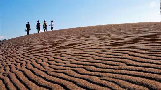 鸟取砂丘位于鸟取县东部,东西长约16公里,南北宽约2公里,是日本最大的砂丘。这是由飘落到千代川泥砂之上的火山灰堆积形成的山峰,经受日本海的风吹浪击,历经10万年创作出来的大自然杰作。除砂丘景致以外,还有各种游乐活动,如坐马车观光,或乘坐滑翔伞、滑沙等。