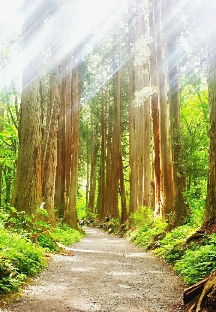 在通往奥社之前,穿过随神门就是经常看到游客拍出非常漂亮照片的奥社参道杉木林了。参道约长2公里,超过400年的高耸的杉木仿佛让人在一瞬间就安静下来,漫步其间便可清空烦躁的情绪。