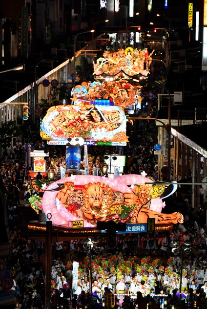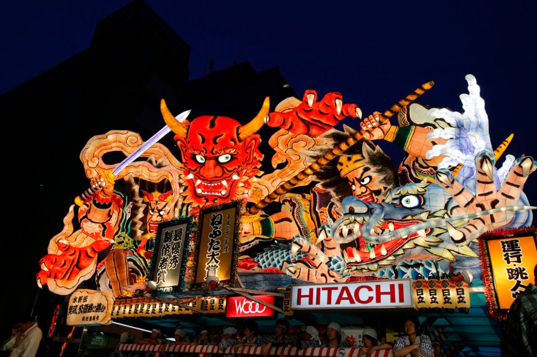 每年的8月2日-8月7日,人们为了赶走睡神而举办睡魔祭。这场整个日本东北最古老、最隆重的祭典,简直就是一次大型的狂欢派对。由历史人物组成的巨型花灯、踩着鼓点边走边跳的“跳人”群舞,还有可爱的儿童睡魔游行……