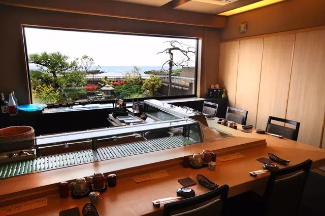 木原寿司位于海边,坐在窗边,眼前的迷你日式庭院后方便是大海。庭院边恰好有一片沙滩,是海鸟的聚集地。涛声与鸟鸣不绝于耳,带来丝丝凉意与惬意。