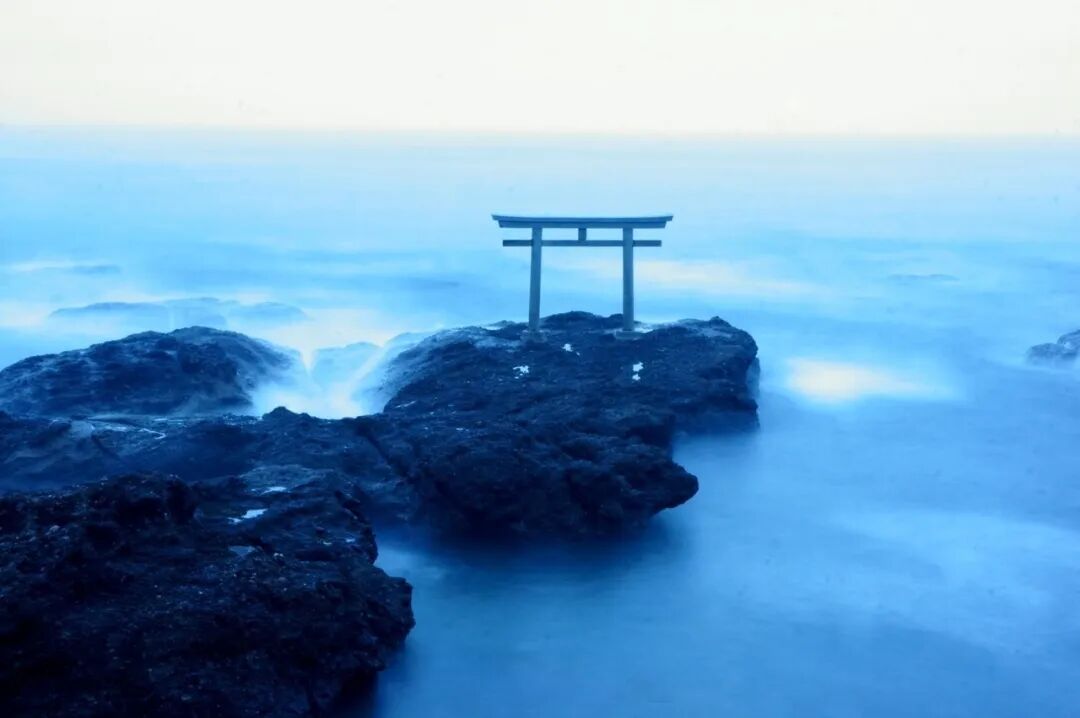 这座神社位于茨城县大洗町,伫立于海边、远处望去仿佛立于海中的石鸟居「神磯の鸟居(かみいそのとりい)」,一直是摄影爱好者趋之若鹜的好去处,身影因此经常出现于SNS之上。