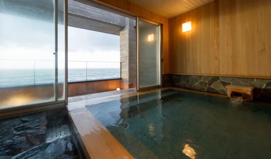 “海边的温泉”设计看起来似乎与海面融为一体,带给人最独特的泡汤体验。