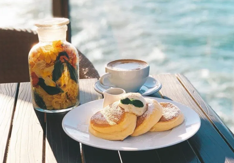 幸福松饼店位于淡路岛度假区。这家咖啡店的招牌舒芙蕾口感松软绵密,由天然蜂蜜和北海道新鲜牛奶制成的鲜奶油,一口下去是满满的幸福感。搭配着无敌海景食用,更是身体和心灵的双重治愈。