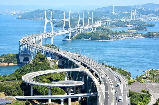 充分感受到世界上最大的跨海大桥——濑户大桥的气势吧!银白色的大桥像线,在海中串起了五座碧绿的小岛,也串起了来来往往的旅人的邂逅。